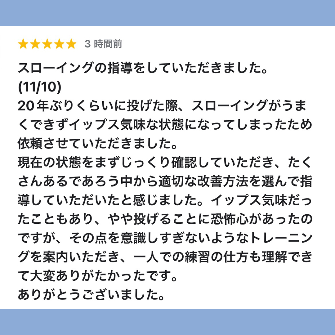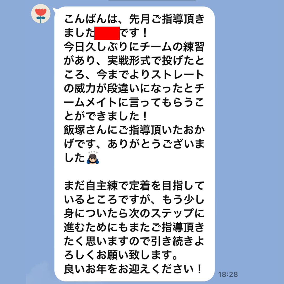 最終的には投げる手で狙わなくてもしっかりコントロールができるまでに改善ができました。