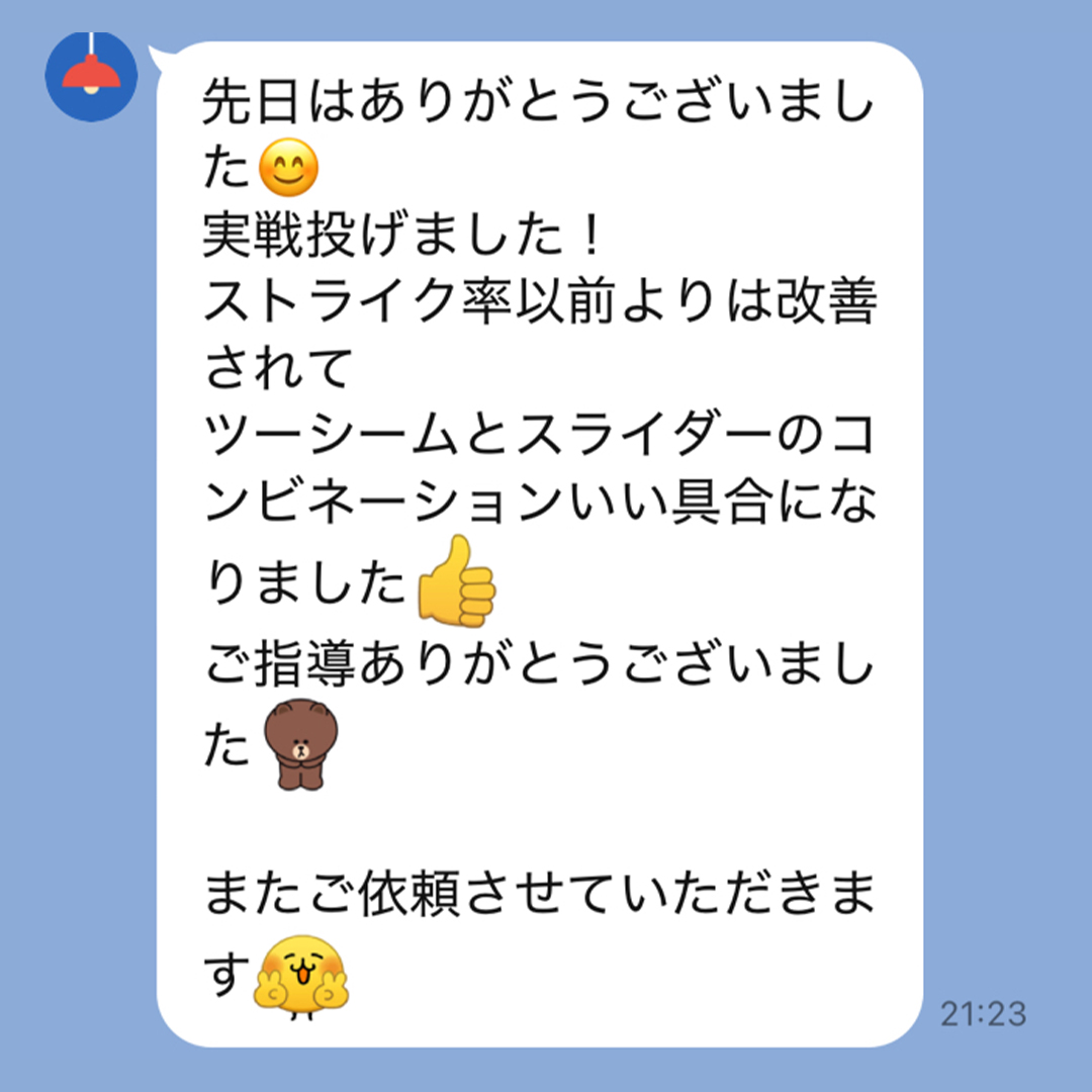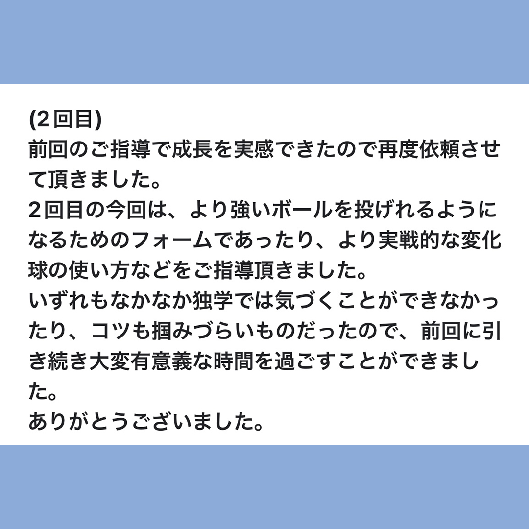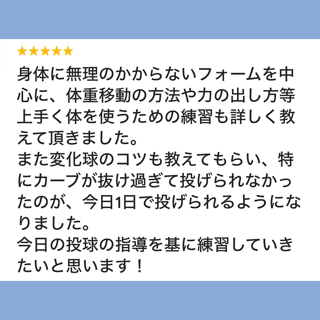 キャッチボールをしてみると叩きつけていて「イップス?!」のような投球だったので球速向上よりはコントロール向上を目標に指導に入らせていただきました。
