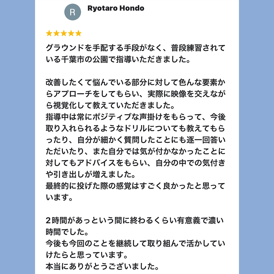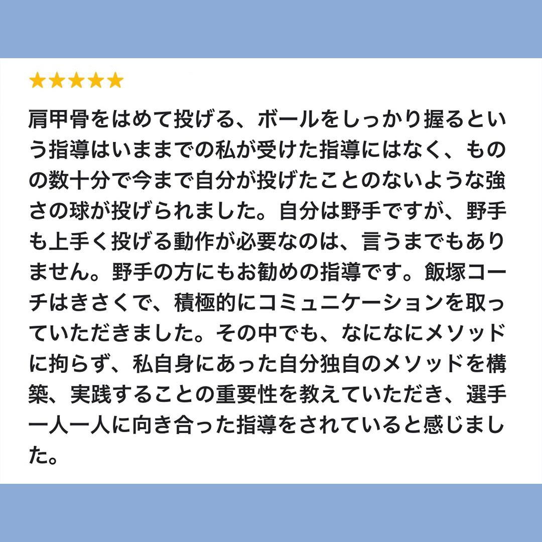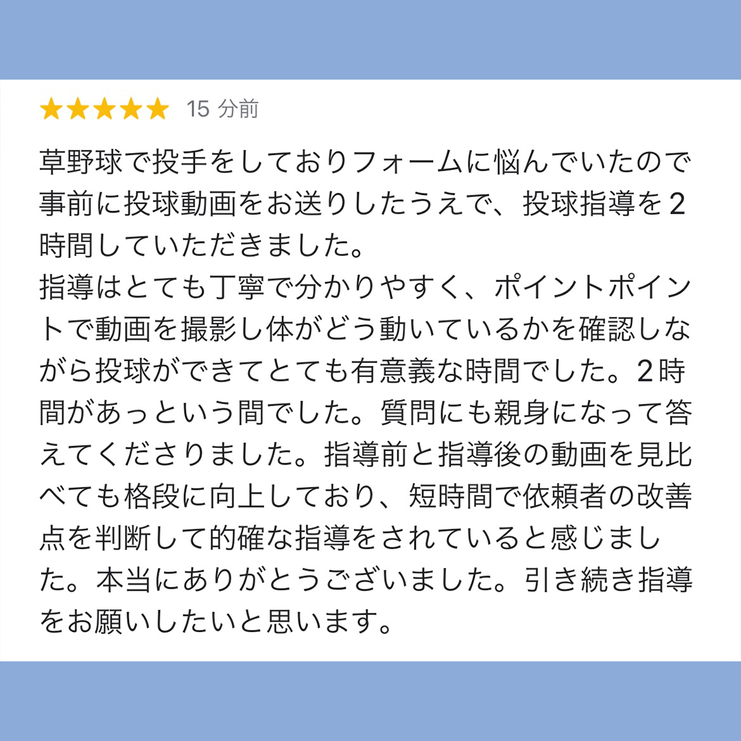 キャッチボールをしてみると叩きつけていて「イップス?!」のような投球だったので球速向上よりはコントロール向上を目標に指導に入らせていただきました。