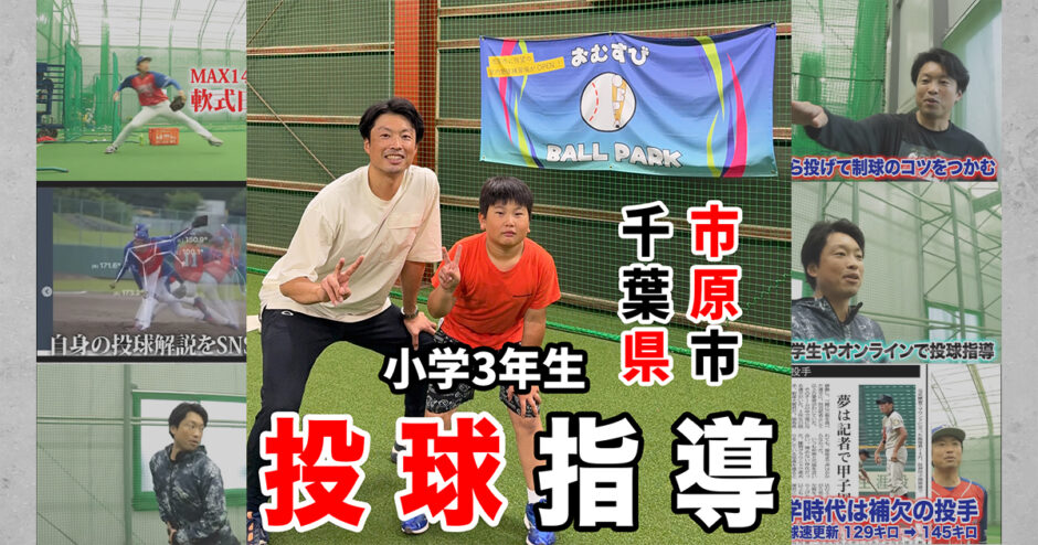 千葉県市原市にある おむすびBallPark (市原市八幡)にて、今回は少年野球チームに所属する小学3年生のピッチング指導を行いました。