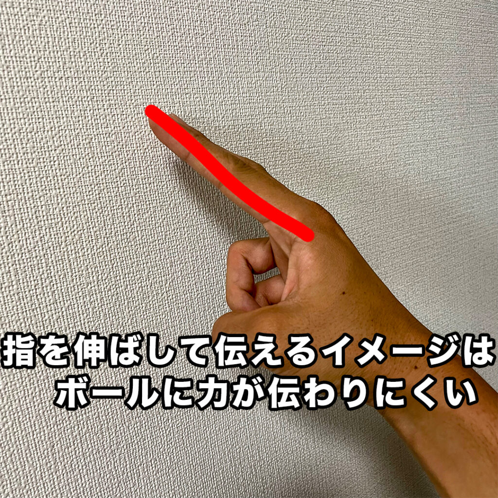 「ボールにしっかり人差し指と中指で力を伝える」ことです。
