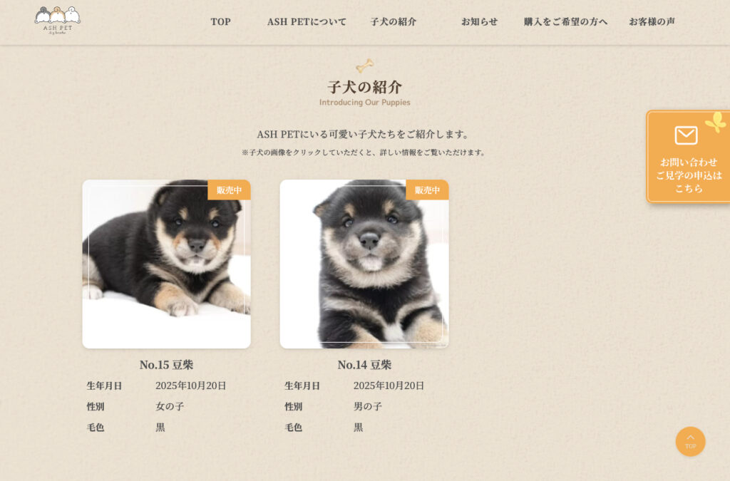 今回は、千葉県匝瑳市で豆柴専門ブリーダーとして活動されている 「ASH PET」様のホームページ更新事例 をご紹介します。