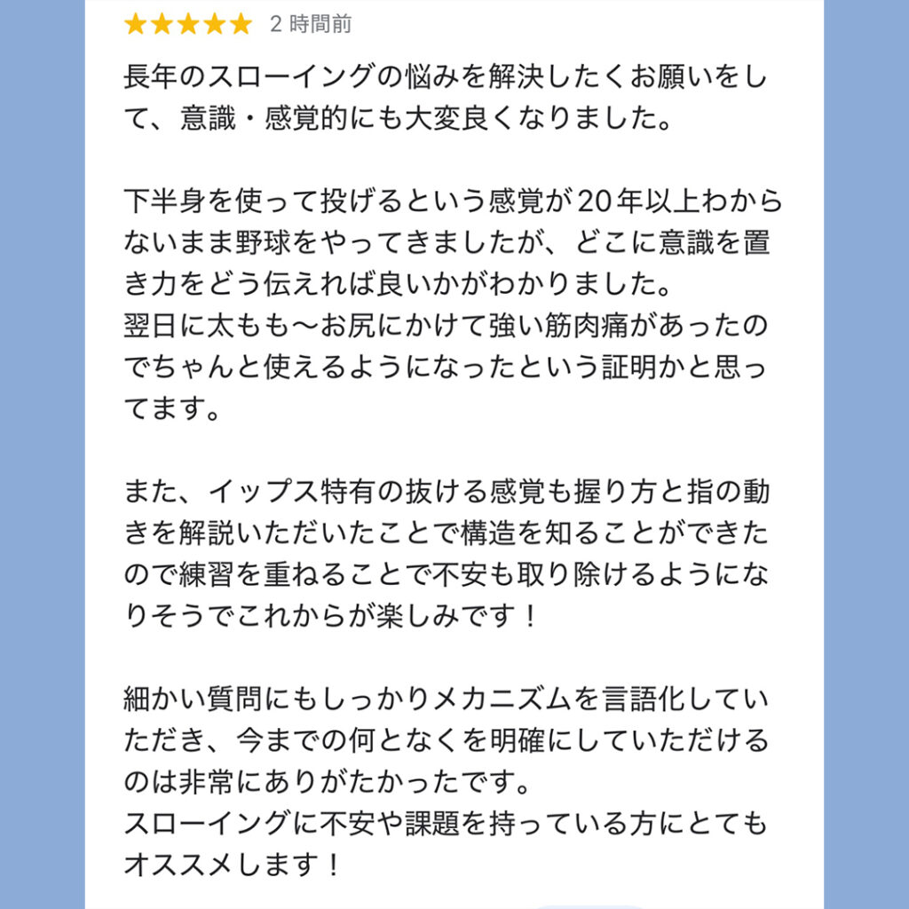 今回は、東京都中野区からお越しの30代草野球選手の投球指導レポートをお届けします。