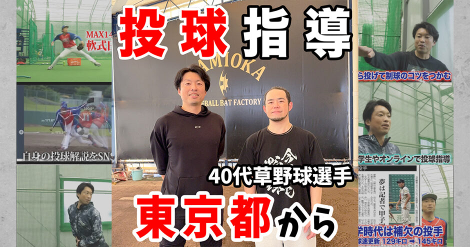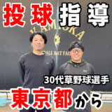 今回は、東京都武蔵野市から42歳の草野球選手が投球指導を受けに来てくださいました。