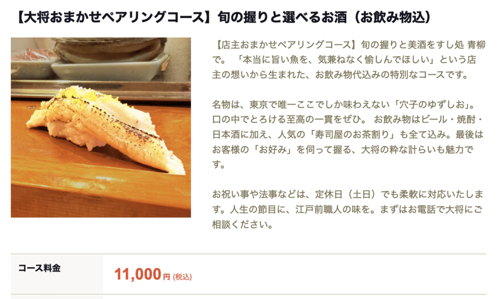 おすすめ:おまかせコース 11,000円(税込)