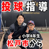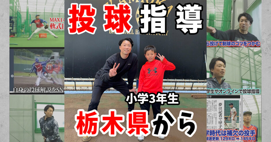 今回は、栃木県から小学3年生の選手が、ピッチング指導を受けに来てくれました。