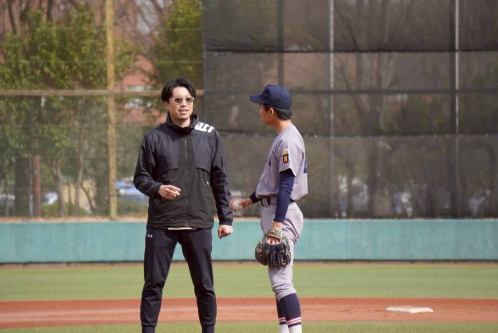 (チームの投球やキャッチボール、スローイング指導)