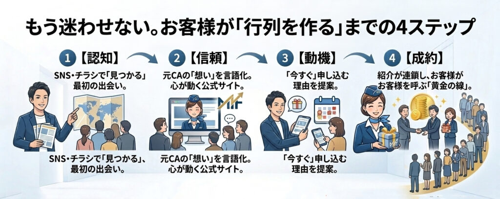 もう迷わせない。お客様が「行列を作る」までの4ステップ